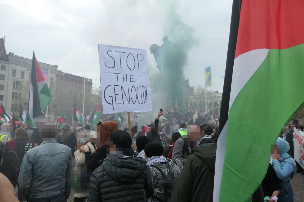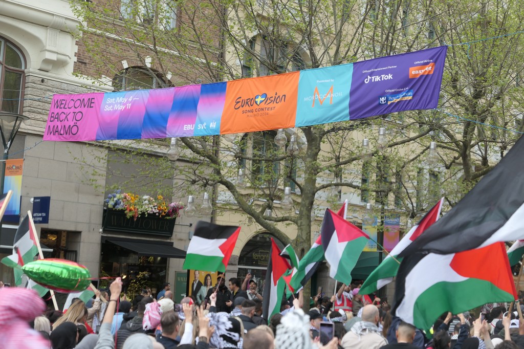 I anden semifinale i Eurovision i Malmø, hvor Israel bl.a. skulle optræde, blev en kæmpestor og kraftfuld demonstration afholdt. Demonstrationen gik fra Stortorget i Malmø Centrum, rundt i byens gader og sluttede af på Mölleplatsen ved Malmøhus Slot.