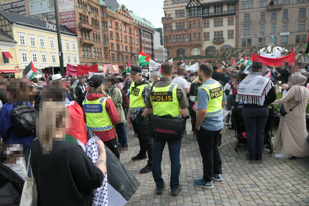 Langs demonstrationen var der også meget svensk politi, både til vands, til lands og i luften. Desuden var der civilbetjente så langt øjet rakte ude på sidelinjen. Mange masser havde rapporteret at de ville forlade Malmø under Eurovision, ikke pga. demonstrationerne, men fordi den tunge tilstedeværelse af svært bevæbnet politi gjorde dem utrygge.