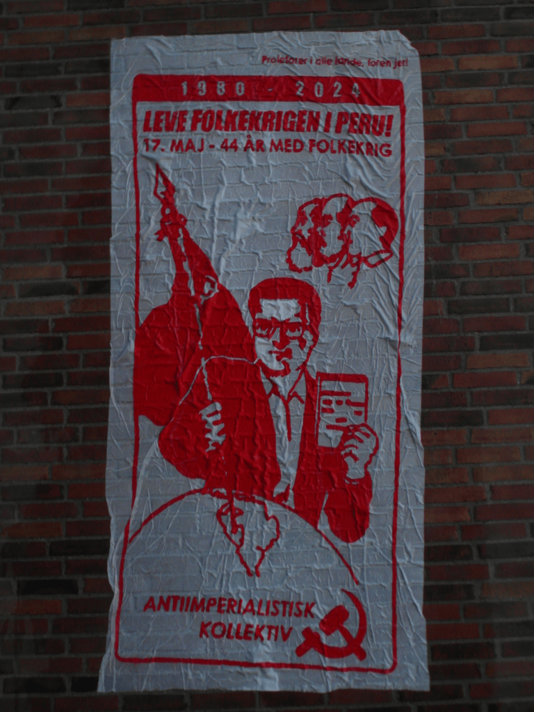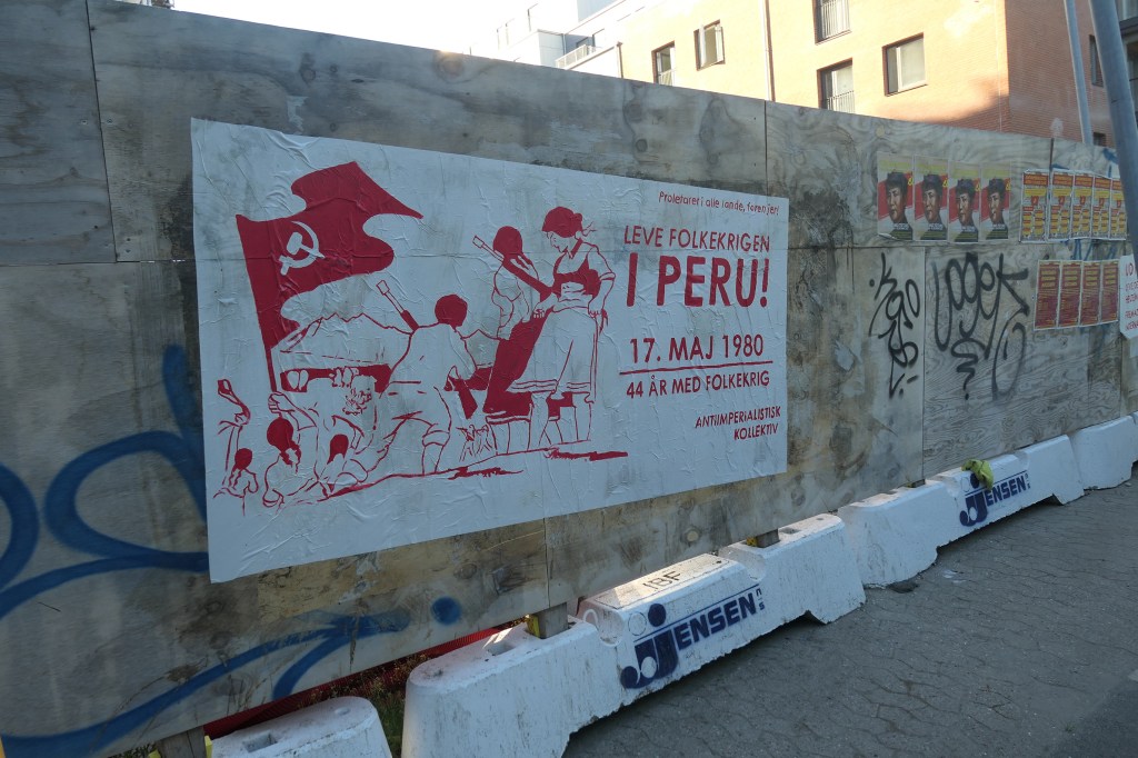 I København, i det proletariske nabolag Mjølnerparken blev en vægavis hængt op med parolen »Leve Folkekrigen i Peru!«