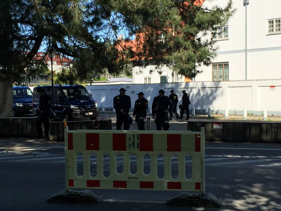 Har var der tæt dækket op med kampklædte betjente, der stod parate til at imødekomme demonstranterne.