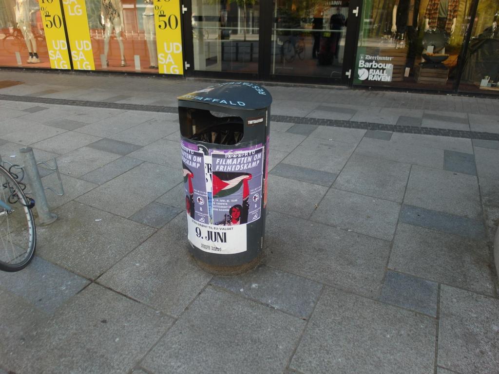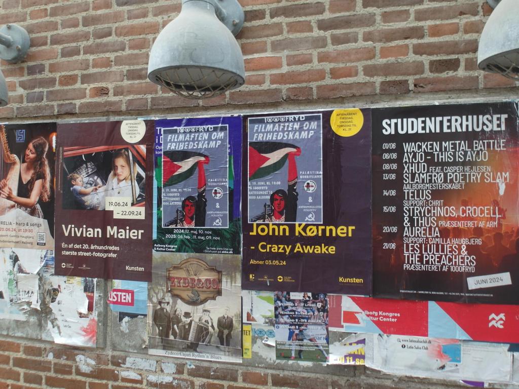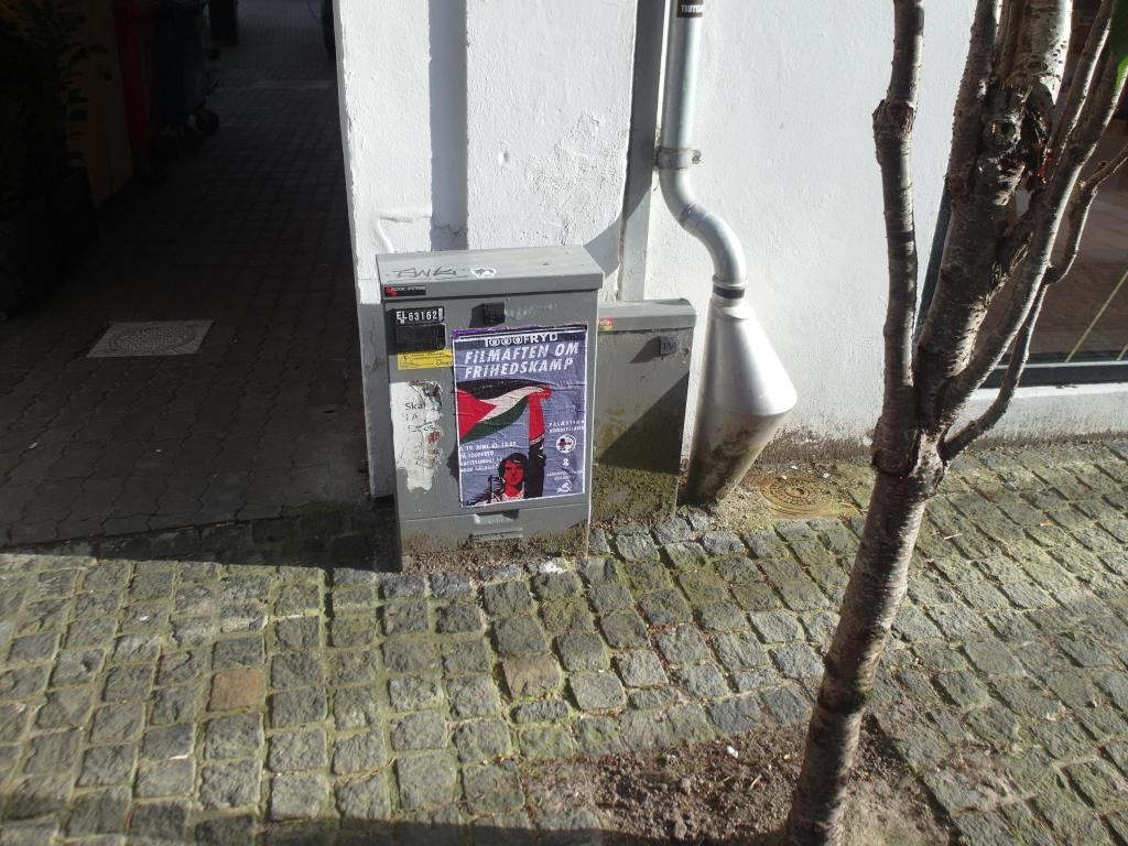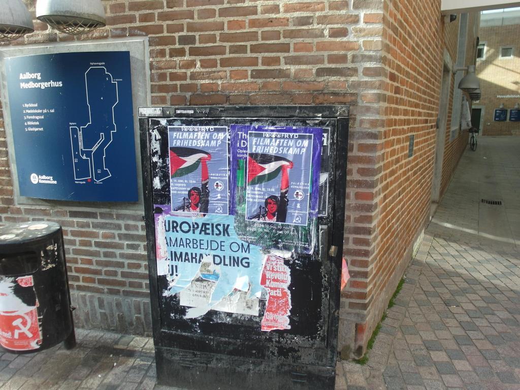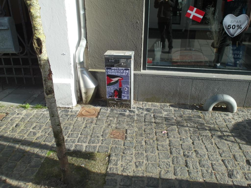 Vi har modtaget dokumentation af plakater, omkring den kommende Filmaften om Frihedskamp, sat op i Aalborg midtby.