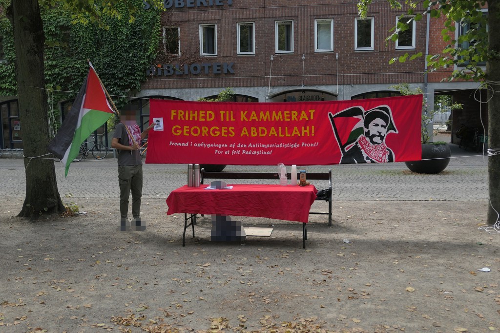 I det proletariske nabolag Blågårdsplads satte aktivister fra Antiimperialistisk Kollektiv en stand op, hvor man kunne modtage gratis kaffe og en information om kampagnen for kammerat Georges Abdallah. Mange nysgerrige fra nabolaget kom op til bordet og tog meget positivt imod løbesedlerne.