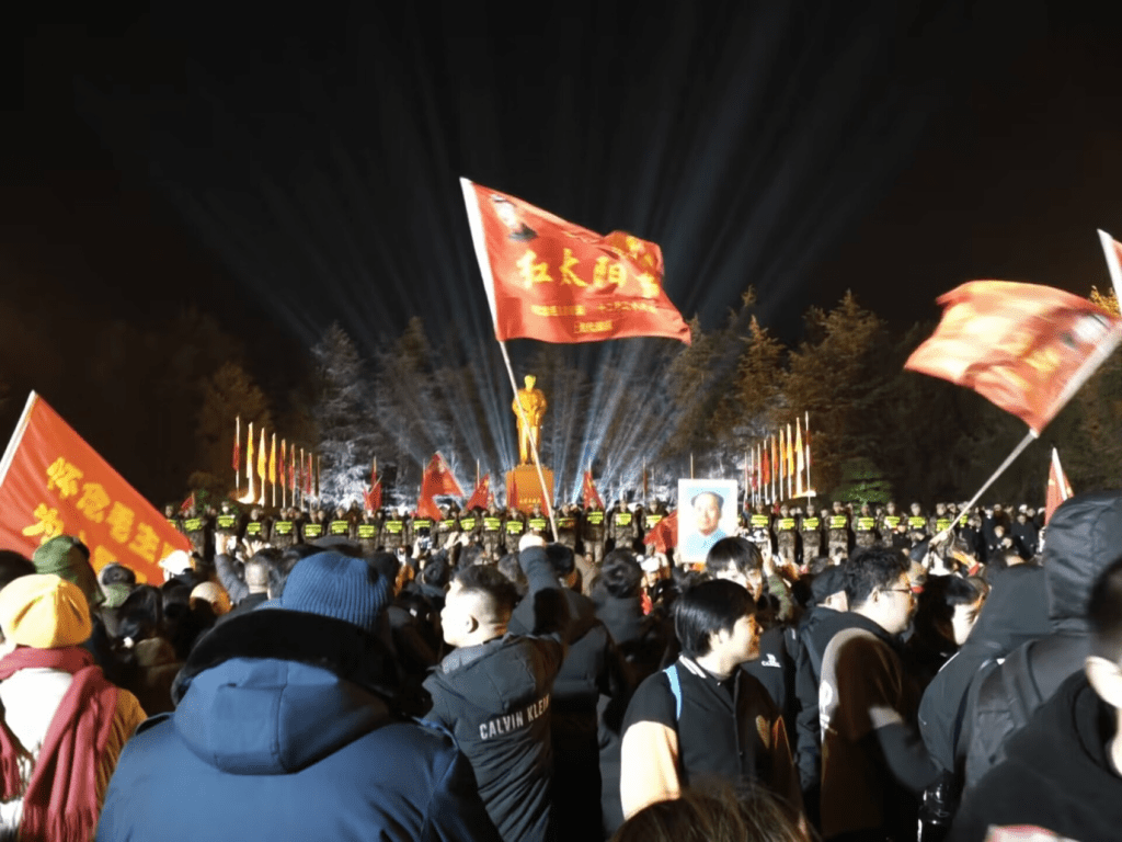 Ved tunellerne omkring universitetet blev der malet grafitti med parolerne: »75-året for stiftelsen af Folkerepublikken Kina!«, »Ned med revisionisten Xi Jinping!«, »Knus socialimperialismen med Folkekrig!«, »Død over revisionismen!« og »Foren jer under maoismen!«