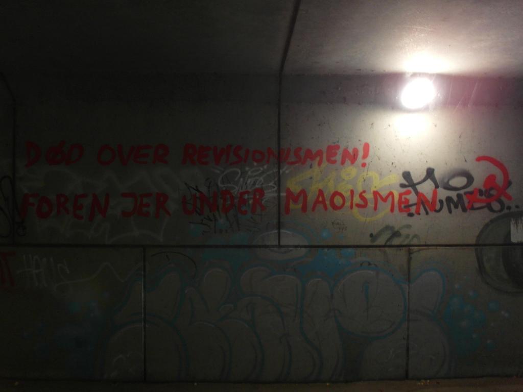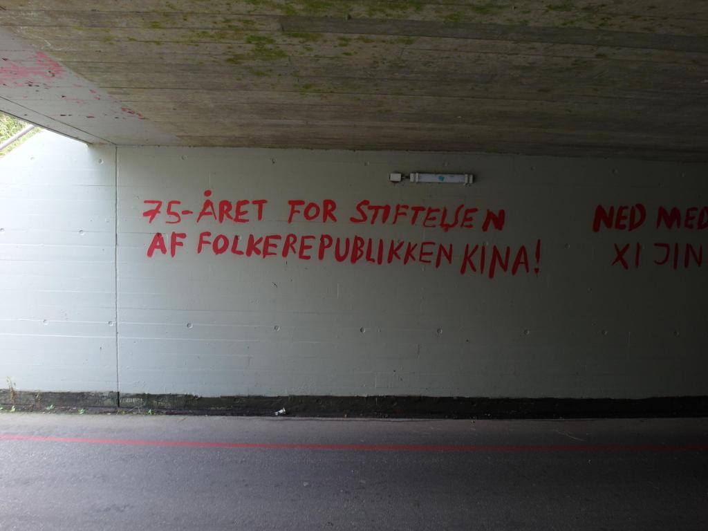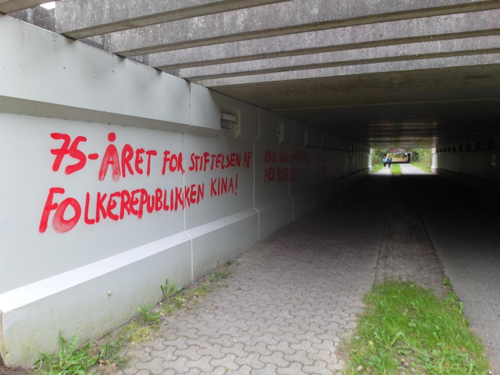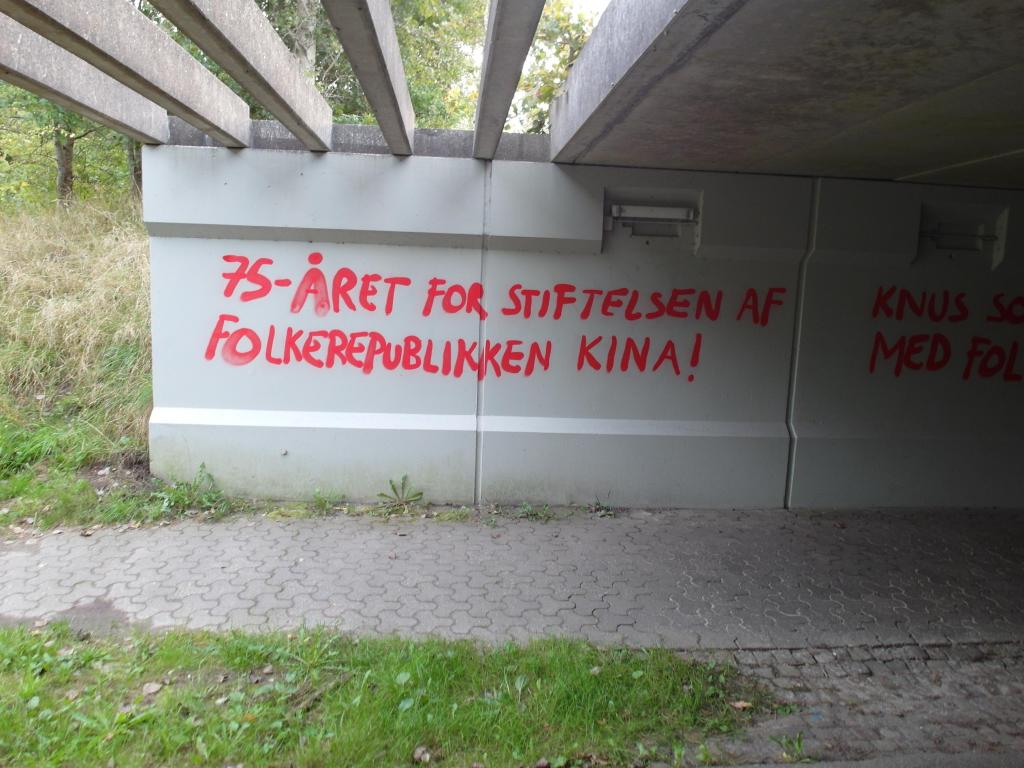 I det proletariske nabolag Lundtoftegade blev en dazibao hængt op med parolerne: »75-året for stiftelsen af Folkerepublikken Kina!«, »Ned med revisionisten Xi Jinping!« og »Knus socialimperialismen med Folkekrig!«.