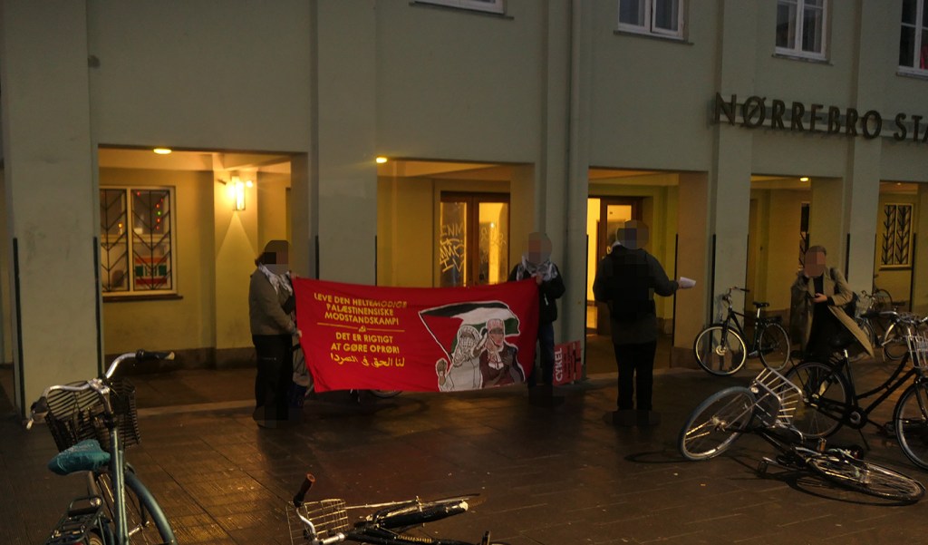 Mens zionister, beskyttet af tungt bevæbnet politi, holdte deres sørgelige markeringer, fandt et hav af massernes aktioner sted spredt over hele byen. Som en del af disse aktioner var aktivister fra Antiimperialistisk Aktion på gaden, hvor en markering blev holdt på Nørrebro Station og Mimers Plads. Her blev der afholdt en tale så højt at den gav genlyd i hele kvarteret.