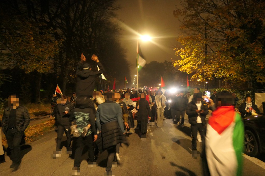 Efter 1 time trak demonstrationen sig fælles tilbage, hvor kraftfulde slagord gav genlyd gennem Hellerup, mens røgblus fyldte gaderne. Demonstrationen gjorde det klart at efter mere end 1 år med folkemord, er modstanden stadig stærk og demonstrationer kan på under 24 timer tiltrække hundredvis af deltagere, der er klar til at forsvare det palæstinensiske og libanesiske folk.