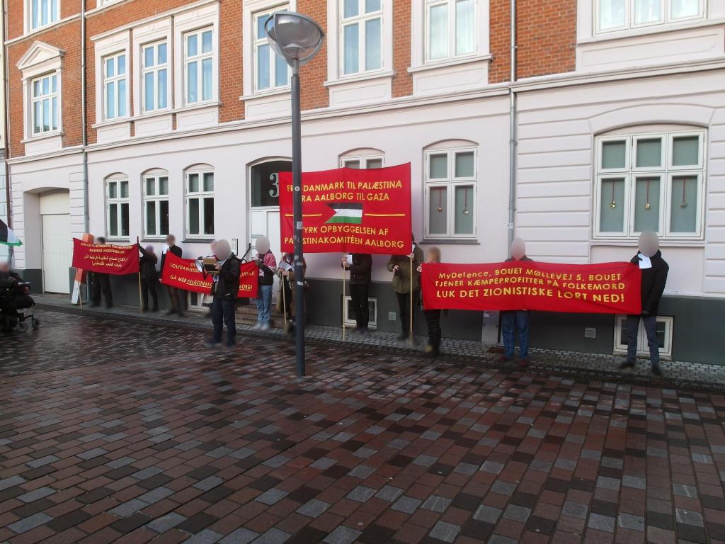 Da demonstrationen nåede til Gabels Torv, blev der holdt tale af Antiimperialistisk Aktion, hvor Israels folkemord blev fordømt, og den Palæstinensiske modstandskamp hyldet. Der blev fortalt om firmaet MyDefence i Nørresundby, som eksporterer våben til Israel, og at man i Aalborg må gøre modstand imod firmaer der aktivt tjener kæmpeprofitter på folkemord. Der blev også fortalt de seneste nyheder om kampagnen for Georges Abdallahs befrielse, specifikt den franske regerings løfte om at løslade kammeraten. Sidst men ikke mindst, blev det gjort klart i talen, at der findes opportunister i solidaritetsbevægelsen, som har ønsket at folket i Aalborg skulle tie stille og netop ikke hejse og forsvare det palæstinensiske folks heltemodige modstandskamp – men imod deres ønsker fortsætter arbejdet i Aalborg.