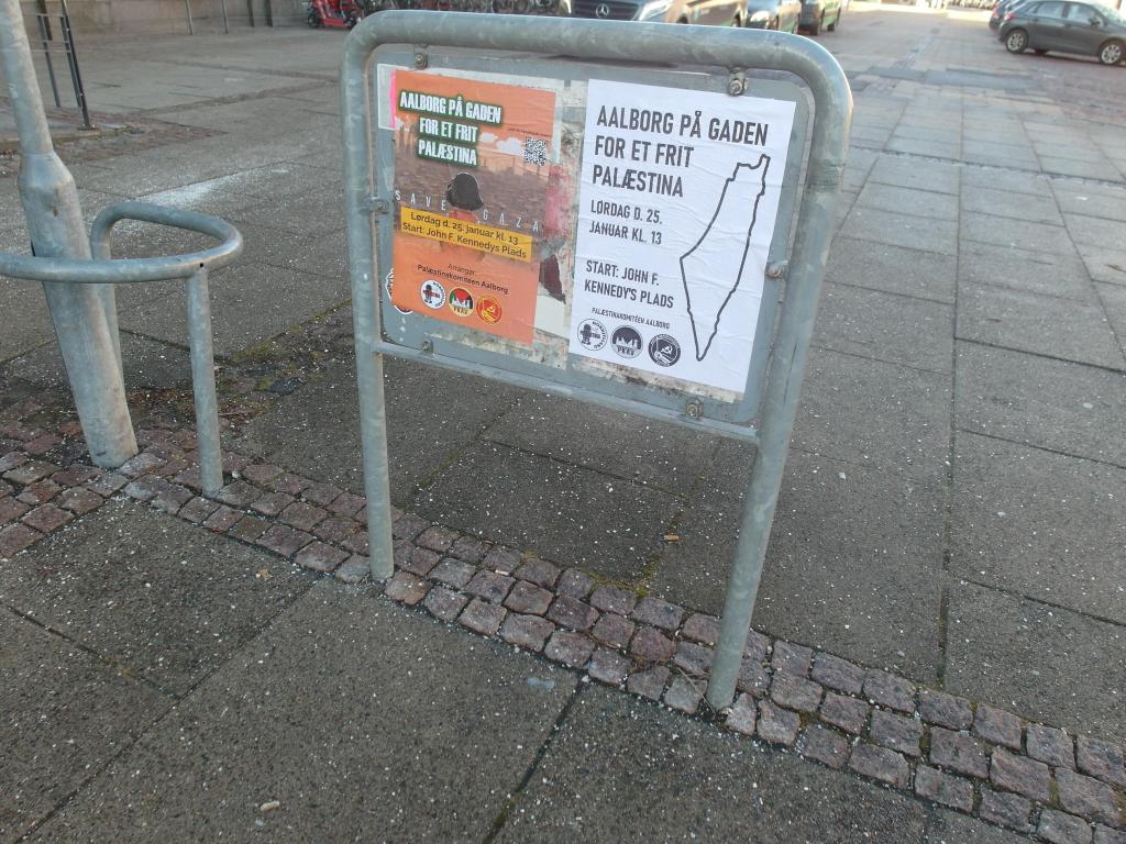 Vi har modtaget dokumentation om at en række plakater er blevet sat op i Aalborg, til at mobilisere folk til den kommende Palæstina demonstration.