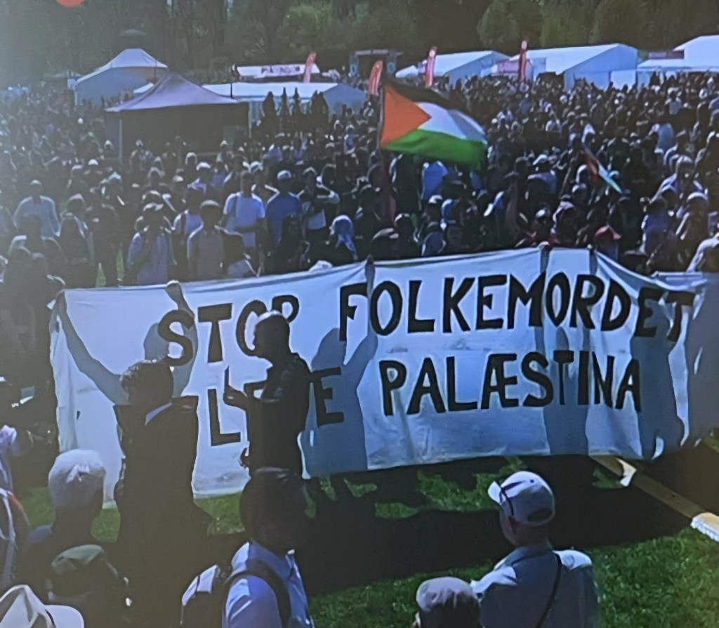 As Hummelgaard began his speech, he and his DSU supporters were met with a surprise when crowds began to boo him and shout “Free free Palestine!” and “Social democracy, class treason!”. Many had brought whistles, foghorns and other things that made it impossible to hear a word of Peter Hummelgaard’s speech.