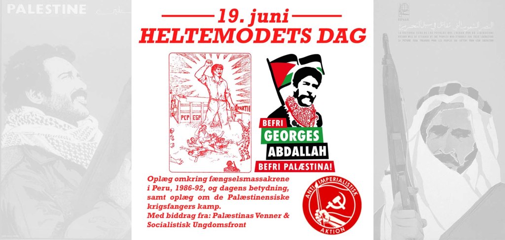 Antiimperialistisk Aktion markerer den internationale dag for solidaritet med verdens fængslede frihedskæmpere og revolutionære, Heltemodets Dag, den 19. juni, med et arrangement på Cafe 1000Fryd i Aalborg med taler, oplæg, og film. På dagens program vil blandt andet handle om fængselsmassakrerne i Peru i 1986 og 1992, de fængslede Palæstinensiske frihedskæmpere, og kampagnen for befrielsen af den Libanesiske folkehelt, Georges Ibrahim Abdallah.