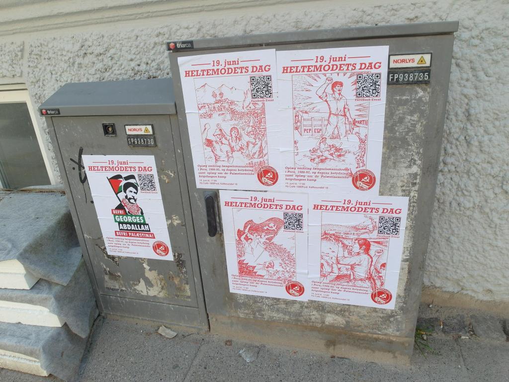 Redaktionen på Røde Fane har modtaget dokumentation for at der i de sidste to uger er blevet udført en række plakataktioner i Aalborg Midt- og Vestbyen for at promovere et arrangement d 19. juni på Cafe 1000FRYD, Kattesundet 10, 9000 Aalborg, afholdt af Antiimperialistisk Aktion for markeringen af Heltemodets Dag.