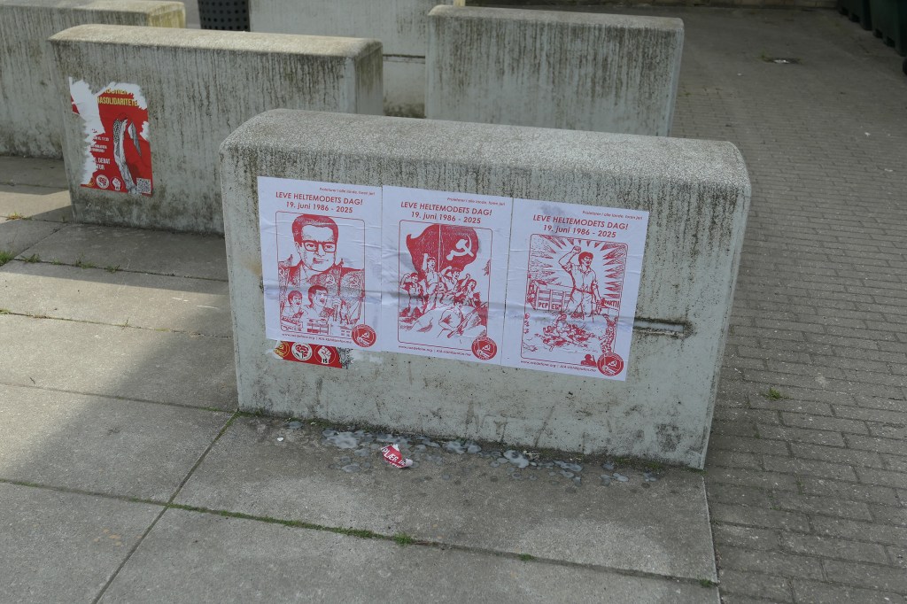 Vi har modtaget en rapport om at plakataktioner er blevet udført i proletariske nabolag i København. Plakater er blevet hængt op i anledningen af 39-årsdagen for Heltemodets Dag.