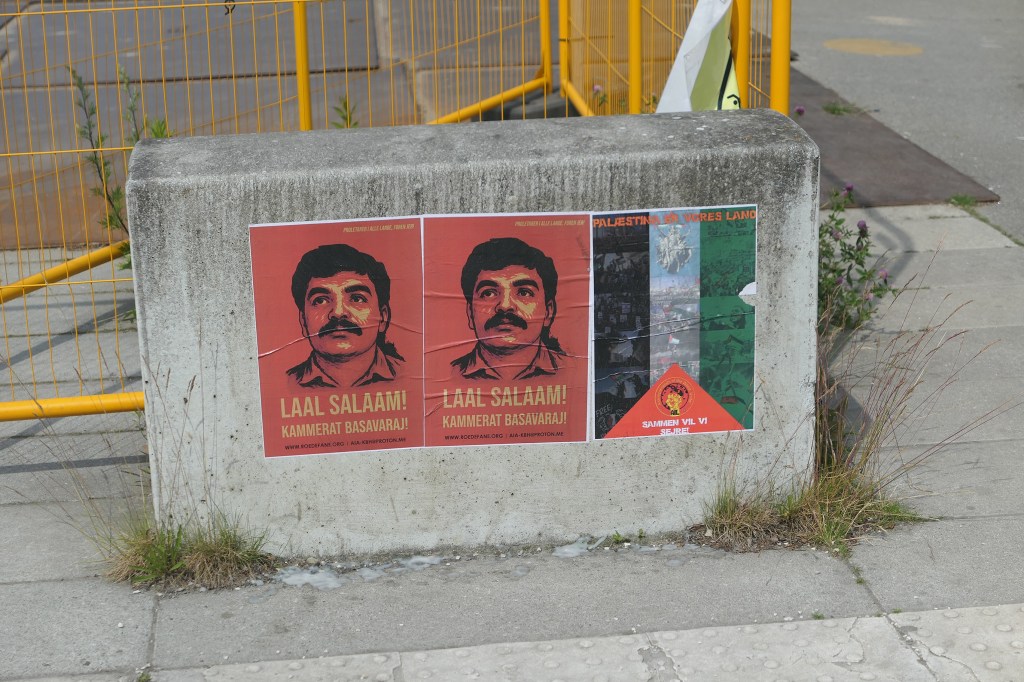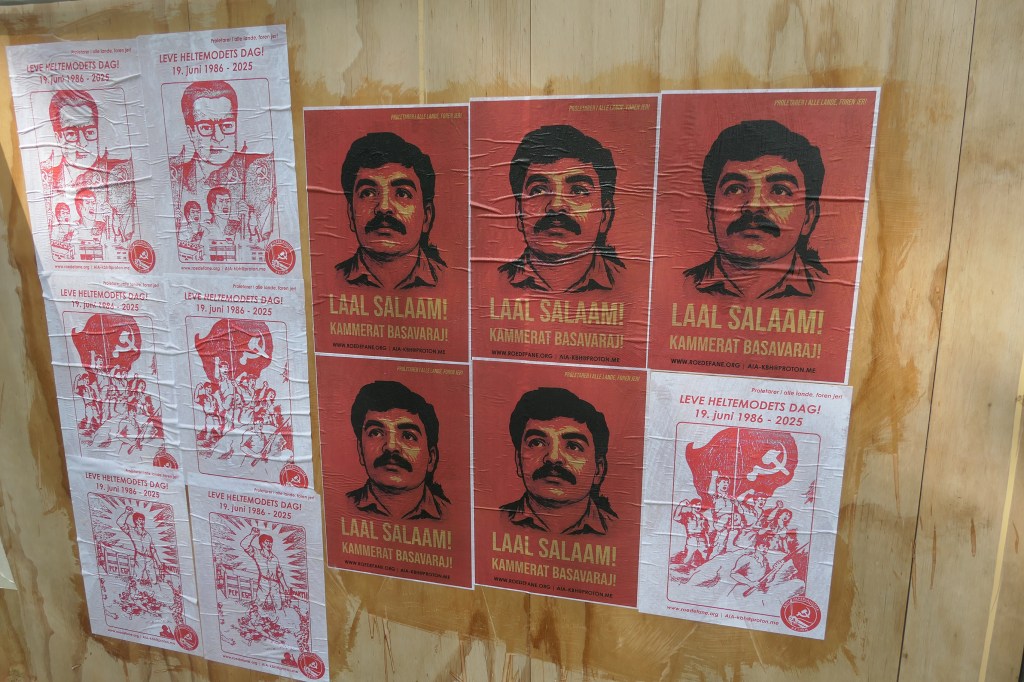 Vi har modtaget en rapport om at plakataktioner er blevet udført i proletariske nabolag i København. Plakater, der hædrer kammerat Basavaraj, generalsekretær for Indiens Kommunistiske Parti (maoister) [CPI (maoister)]