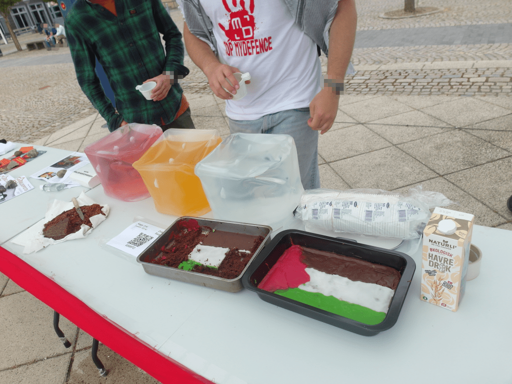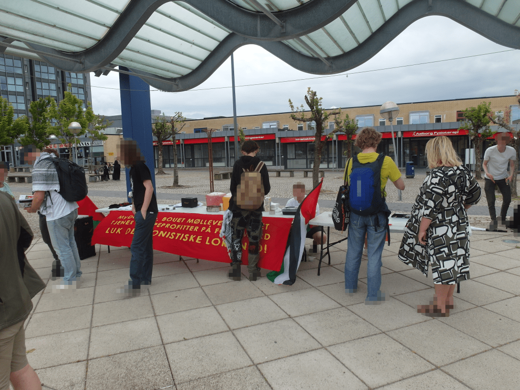 Søndag d. 13. afholdte Palæstinakomiteen Aalborg (Palæstinas Venner og Socialistisk Ungdomsfront) og Antiimperialistisk Aktion, solidaritetsarrangementet for Palæstina, »Sommer og Solidaritet« i det proletariske nabolag Grønlandstorvet. Arrangementet bestod af en badge-workshop og uddeling af politisk materiale omkring militærudstyrsproducenten, MyDefence. MyDefence er et Israelsk styret producent af dronekrigsudstyr for blandt andet det Israelske militær og tjener rekordhøje profitter på folkemordet imod det Palæstinensiske folk. Til arrangementet blev der også solgt kage, kaffe, saftevand, T-shirts, og avisen Arbejderposten. Klistermærker fra Socialistisk Ungdomsfront og Antiimperialistisk Aktion blev også delt ud til gæster og bodens besøgende. Mange fra nabolaget kom forbi arrangementet i løbet af dagen og flere hundrede løbesedler blev uddelt i løbet af arrangementet.