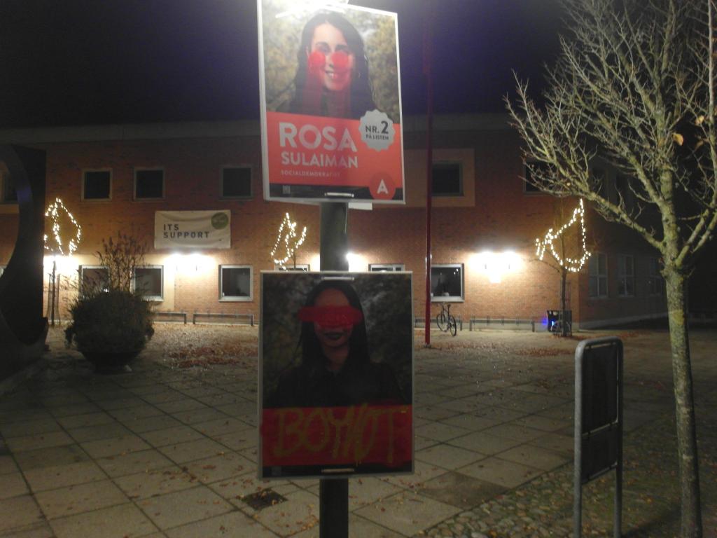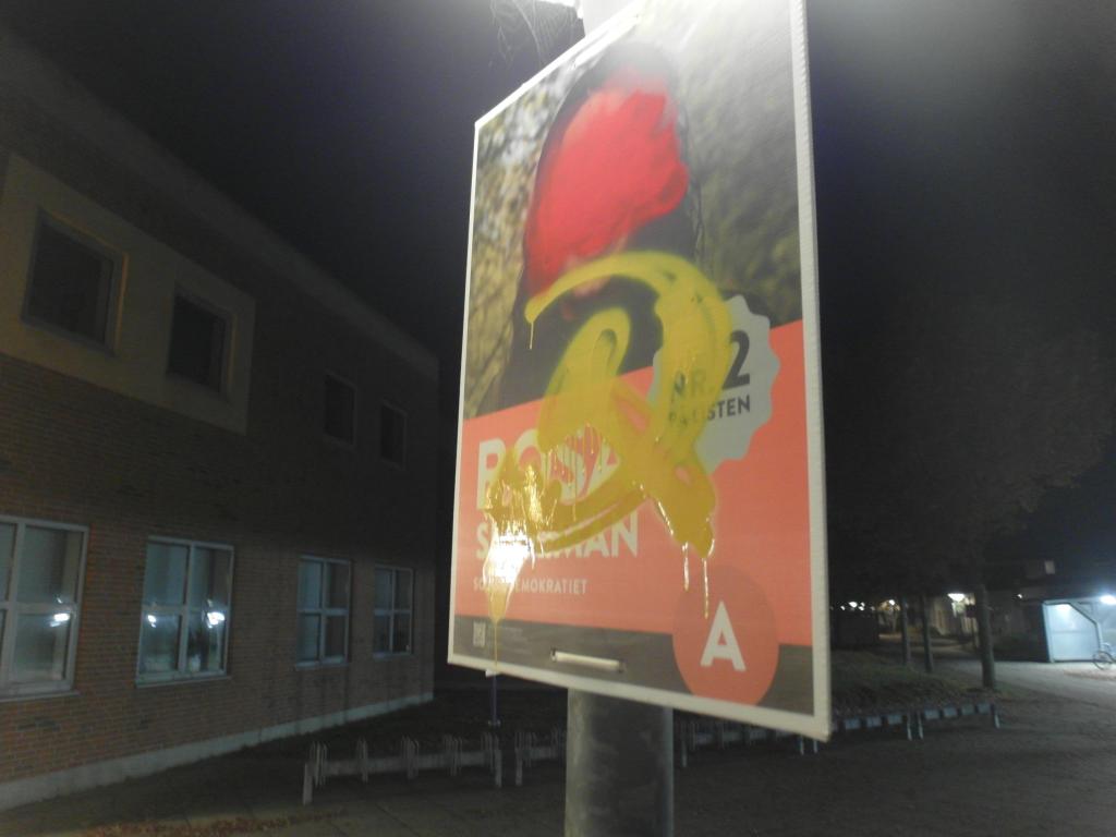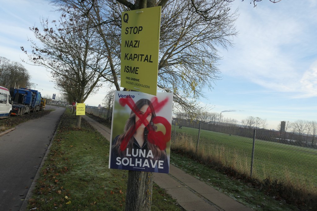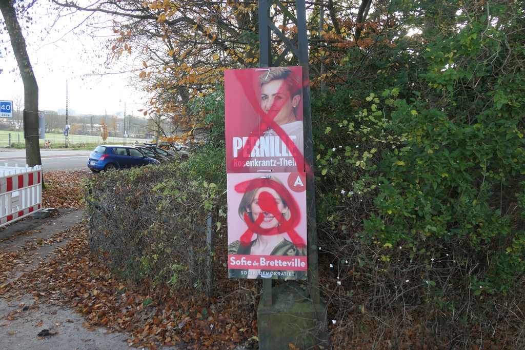 Vi deler også billeder af propaganda og sabotage af valgmateriale, som har fundet sted i Aalborg, nær universitetets campus.
